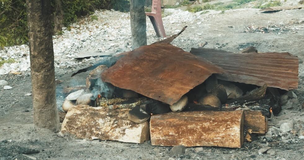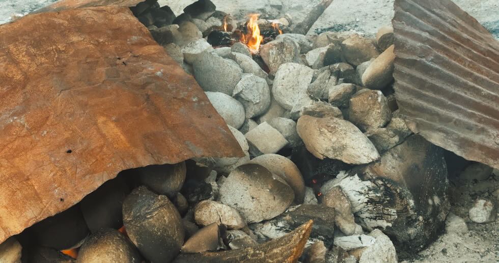 They started by heating the stones in a fire pit outside. Once they were blazing, the stones were carried one by one on metal tongs and plunged into a compartment at the end of the tub. The water hissed. Steam rose. The room warmed. I stepped in.